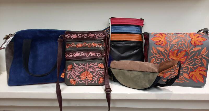 Uit Nepal importeert Happy Lona diverse suède en leren tassen ze worden vervaardigd door families die al generaties lang dit ambacht beoefenen. Ze kunnen effen zijn met weinig opsmuk of juist kleurrijk geborduurd met blad en bloemmotieven met de naaimachine, hierdoor is geen enkel exemplaar hetzelfde en heel uniek.